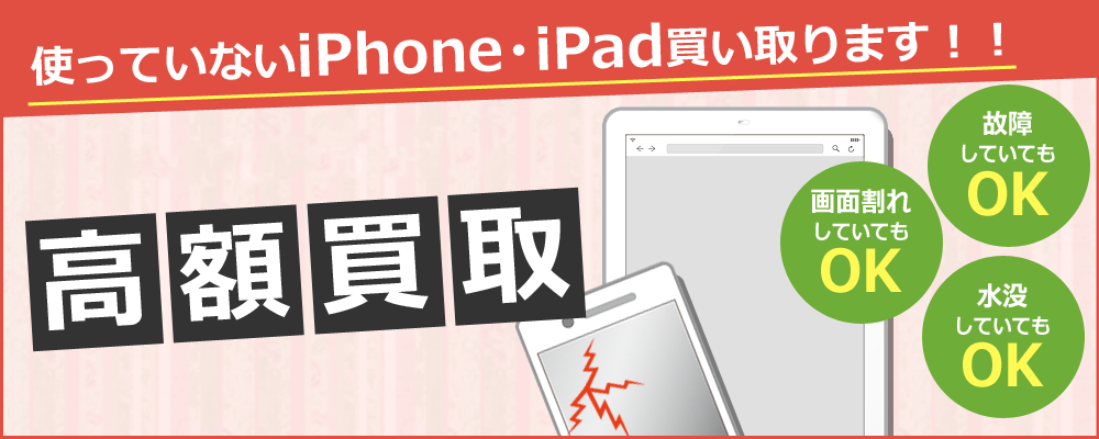 iPhone・iPad、買取します!画面が割れた、水没したiPhone・iPadでも買取します!高額査定。まずは、店頭にてお気軽にお問い合わせください。